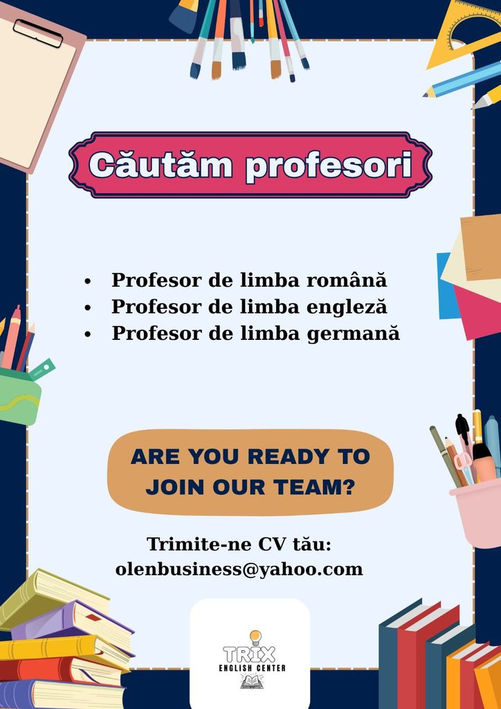 Ești profesor sau absolvent al modului pedagogic şi iubești să predai? Cauți un mediu în care poți aduce un impact pozitiv asupra generațiilor viitoare? Atunci suntem echipa potrivită pentru tine!