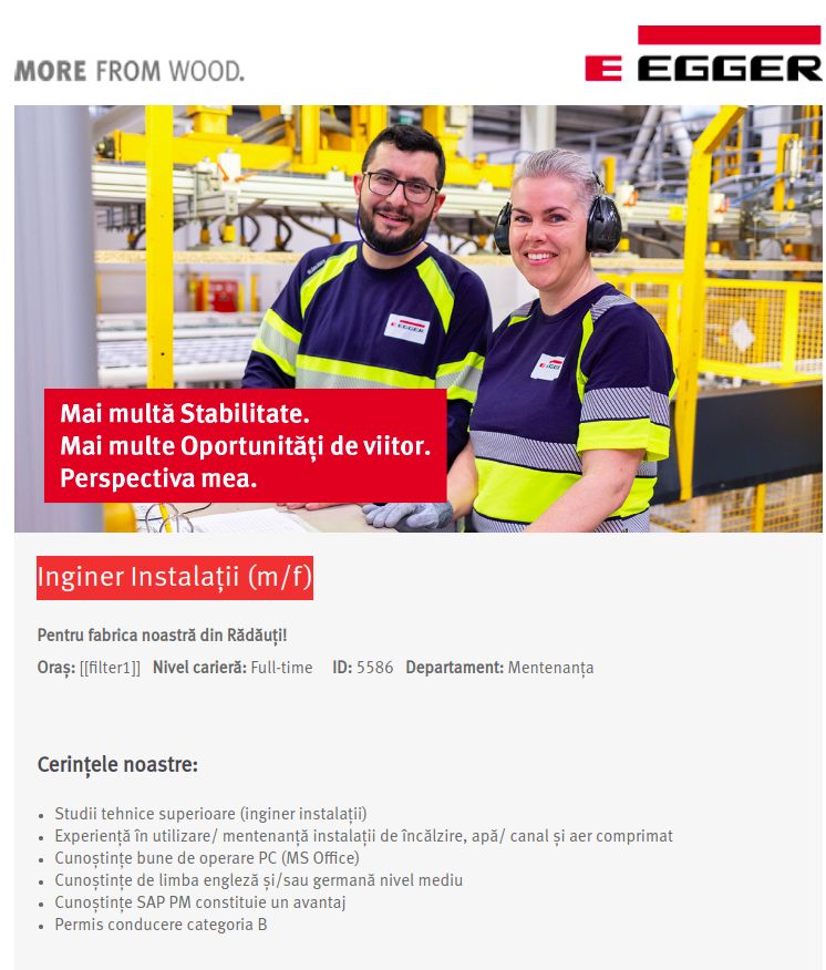 Noi creăm mai mult din lemn. Cei peste 12,000 de angajați ai noștri din întreaga lume lucrează cu entuziasm, împărtășesc valorile familiei noastre și spiritul inovator. Creăm astfel produse pentru mobilier și design interior, construcții si pardoseli laminate. Ne dezvoltăm continuu - fabricam produse noi, ne extindem pe piețe emergente și oferim perspective motivante angajaților noștri.